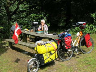 Men vi fejrer skam Elsesken med maner her i Guds smukke, grønne, stlle, og frie natur. Vi nyder den i fulde drag. Det samme gør vi motionen. Vi har i dag kørt 25 km og mangler 32 til vi når Føvling.
