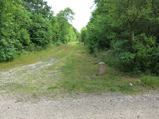 Grænsestenen i Stensbæk plantage havde ingen tekst, men her gik grænsen. Det er Tyskland til højre og Danmark til venstre på billedet